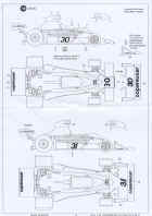 Lo que sorprende cuando abrimos la caja es encontrarnos con planchas de Tamiya, correspondientes al Tyrrel de seis ruedas 1/20. Por supuesto esta el motor completo, partes de la suspensión, ruedas, neumáticos...etc.